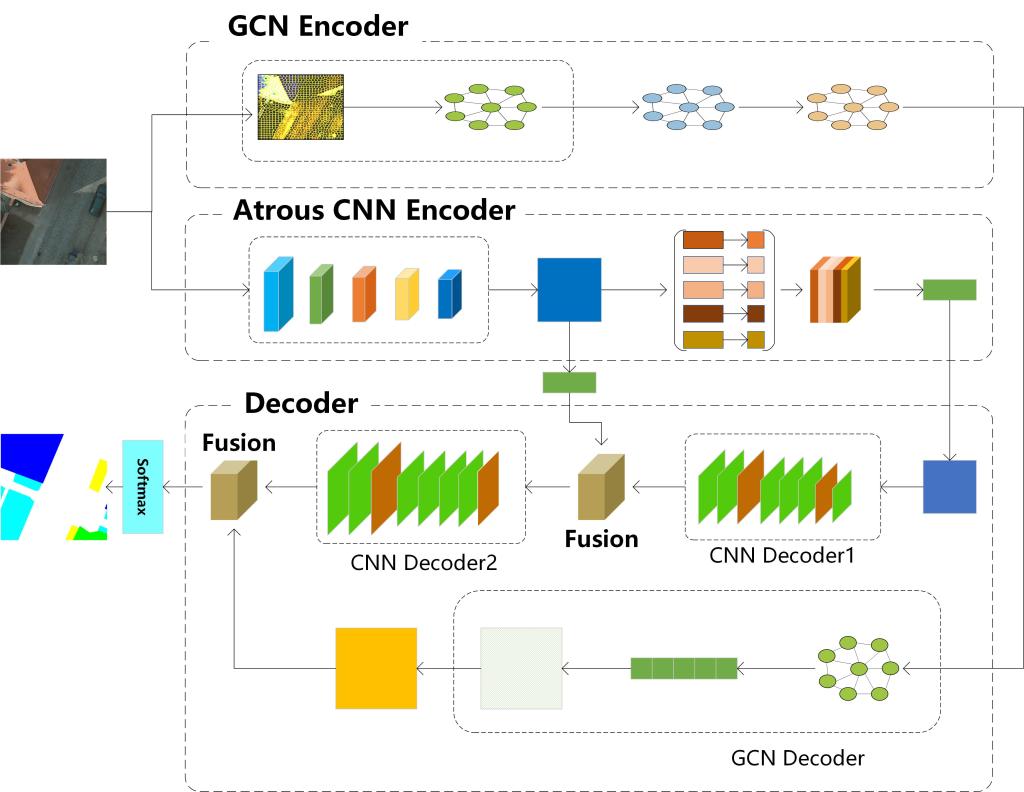 随着遥感探测技术与航空科技的快速发展,包含丰富地物信息的遥感影像数据规模日益猛增,对浩如烟海的遥感影像数据的解译成为了当前的热点、难点问题。语义分割作为一种重要的图像内容解析方法,一直是遥感影像数据的一个重要研究方向。传统的遥感影像处理手段,依赖于较强的专业知识和数据特征本身,需要消耗大量的人力和时间,存在遥感影像目标提取中定位精度低、边缘分割不准确等问题。与传统的遥感影像解译技术相比,深度学习技术为遥感图像的解析和处理带来新变革,但由于卷积核固有的特点,对描述关系的图数据难以获得有效地适配。图卷积神经网络很好地填补了卷积核对于关系处理技术上的空白,实现图数据与深度学习技术有效结合。