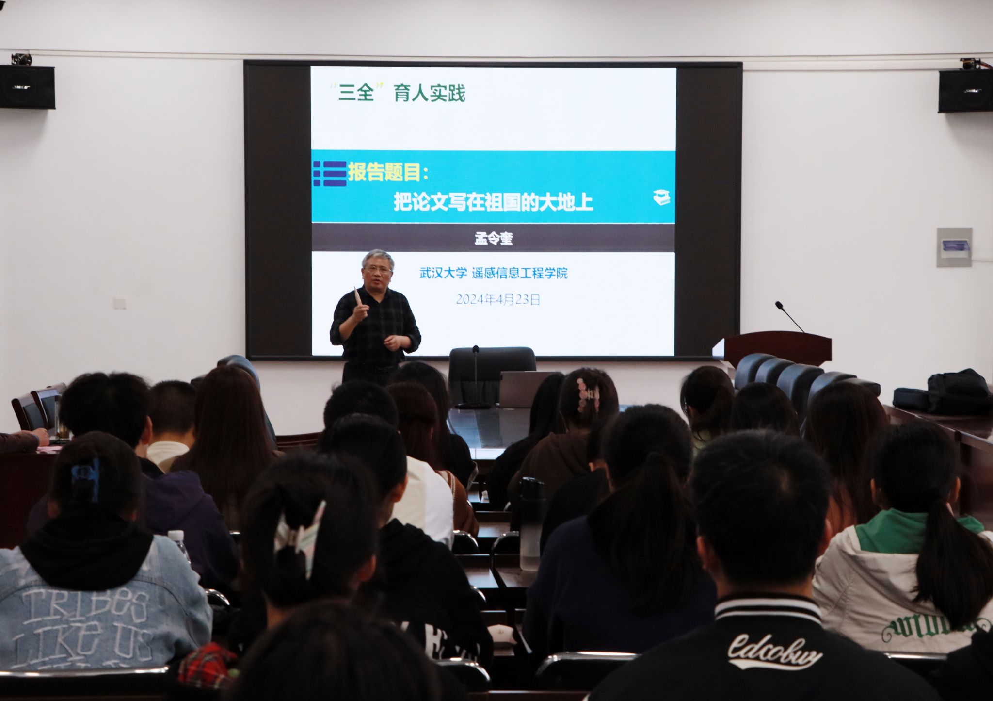 2024年4月23日下午,武汉大学二级教授孟令奎应邀莅临我院作题为《把论文写在祖国的大地上》的学术报告,报告会在测绘楼508会议室进行,海洋技术与测绘学院在校研究生及今年考取硕士研究生的本科生约100余师生共同聆听了此次报告会,报告会由海洋技术与测绘学院党委副书记田扬启主持。