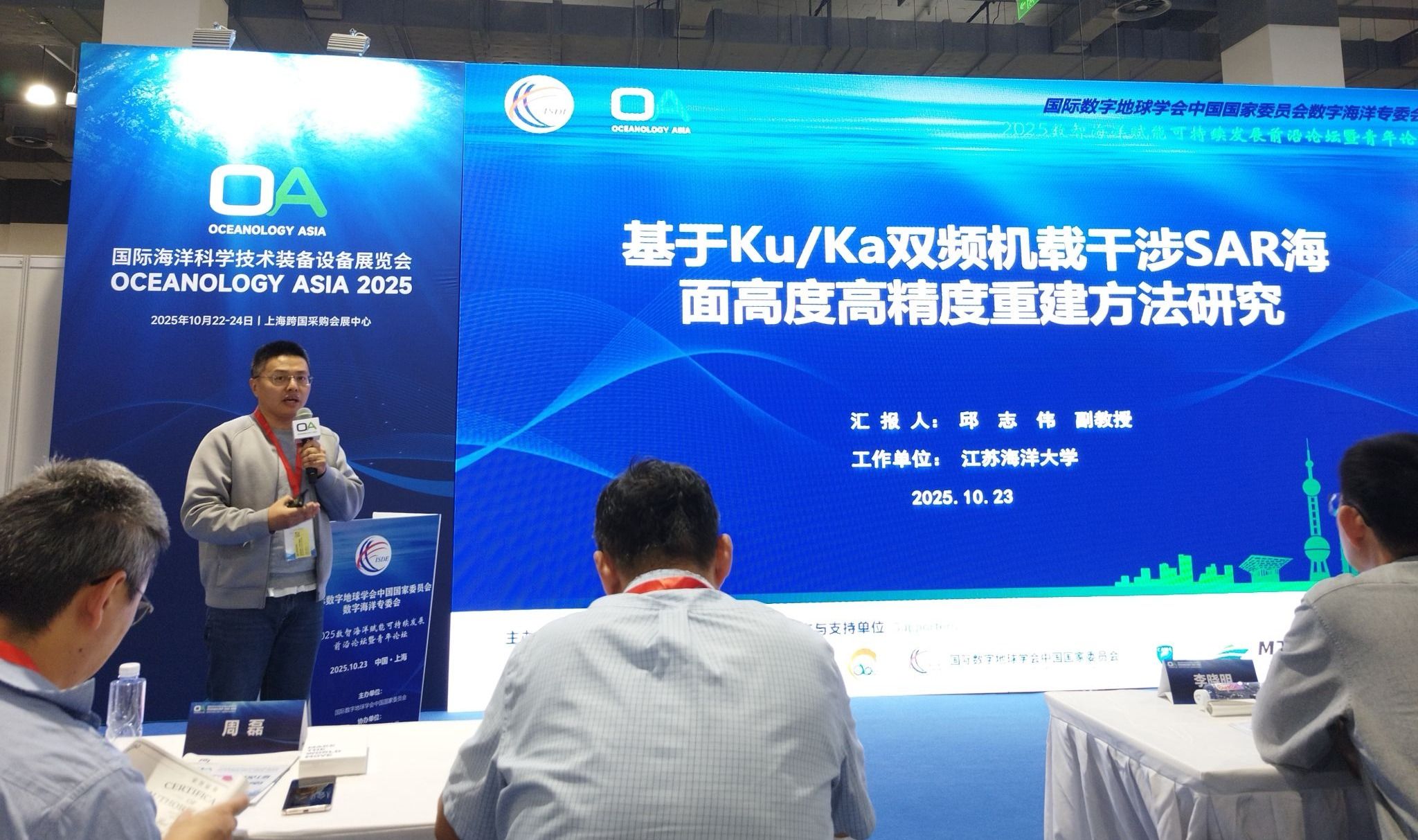 我院邱志伟老师受邀参会,并作题为《基于Ku/Ka双频机载干涉SAR海面高度高精度重建方法研究》的学术报告,充分展示学院在海面测高领域的科研实力。报告为新一代海洋科学卫星提供了一套行之有效的数据处理方法,确保能够高精度地探测亚中尺度的海洋涡旋、内波等现象。该方法利用新一代海洋科学卫星的设计参数,研发出多波段的海面测高全链路模拟仿真,创新性地提出了一种基于Ku/Ka双频合成孔径雷达干涉技术的海面高程高精度反演方法,并通过日照机载海试进行了“空-海”联合验证。最后,邱志伟老师还向与会专家展示了团队近年来丰硕的研究成果。